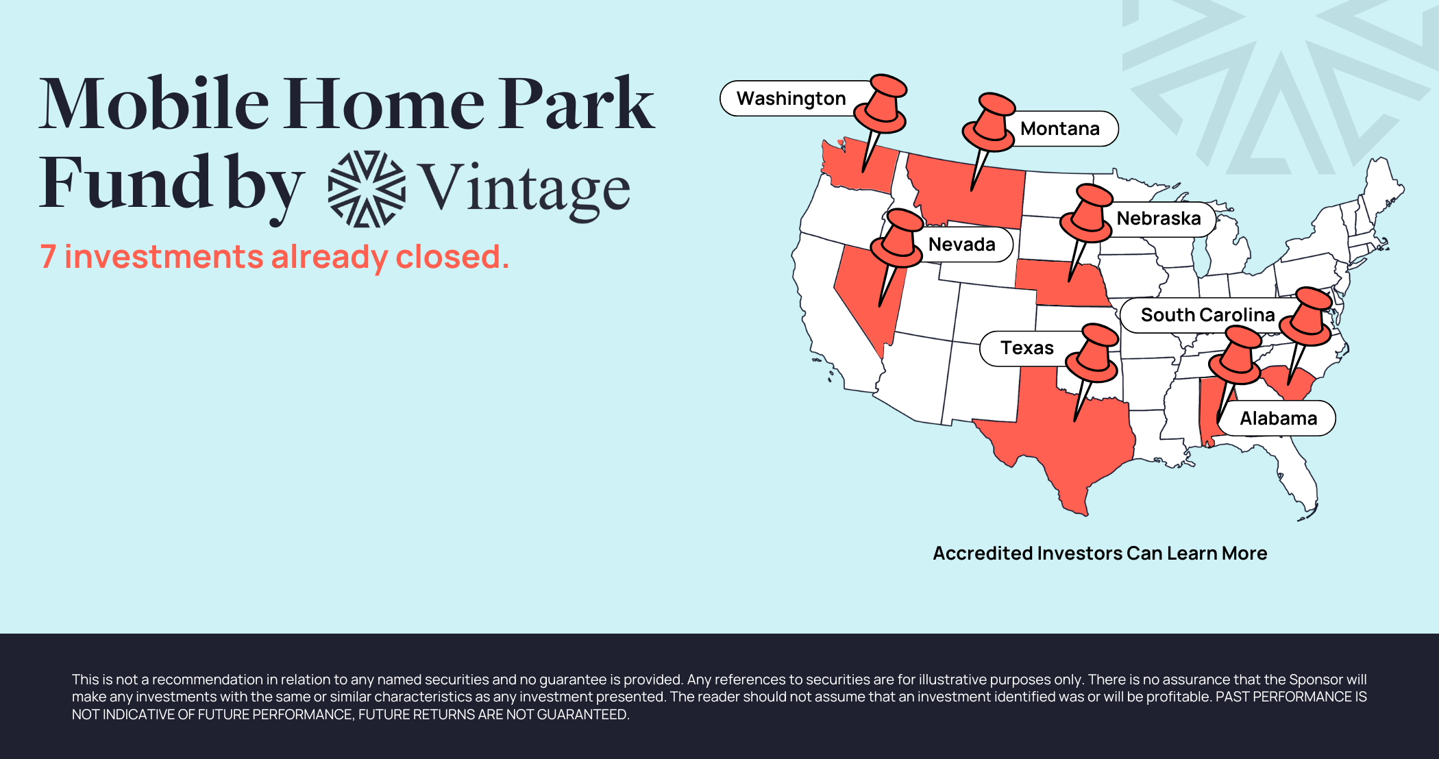 Investors can see tremendous upside with professionally-managed MHP portfolios such as Vintage Capital’s, which targets a 15-17% IRR and makes monthly distributions. Invest directly in individual deals or via a 10+ property fund. 1031s are also available.
